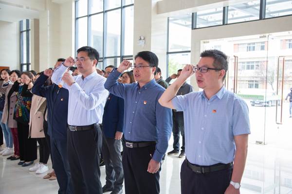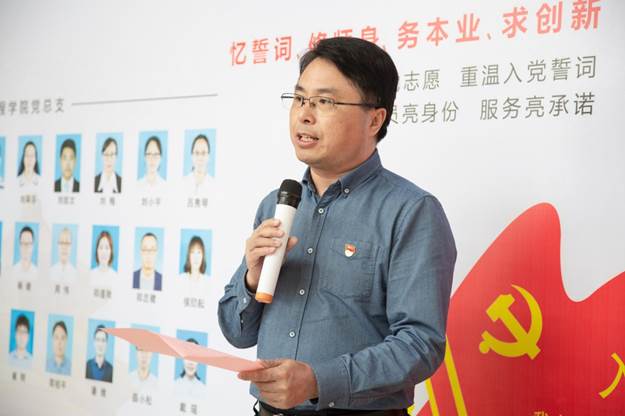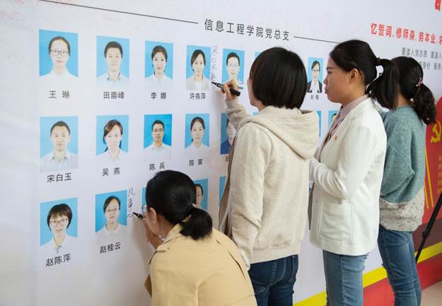 党总支联合举办“四重四亮——忆誓词、修师身、务本业、求创新,做新时代高校合格党员”主题党日活动。学校党委副书记简祖平,党委委员、副院长曹仁勇等领导参加本次活动。简祖平副书记要求广大教师党员要对照“四讲四有”合格党员标准,对照共产党人的初心使命,将本职岗位工作与学校重点、难点工作结合起来,进一步坚定理想信念,坚守责任担当。曹仁勇副院长领誓,全体党员重温了入党誓词,铮铮誓言,字字重任。最后,全体党员教师在“服务亮承诺”签名墙上签署了自己的服务承诺。