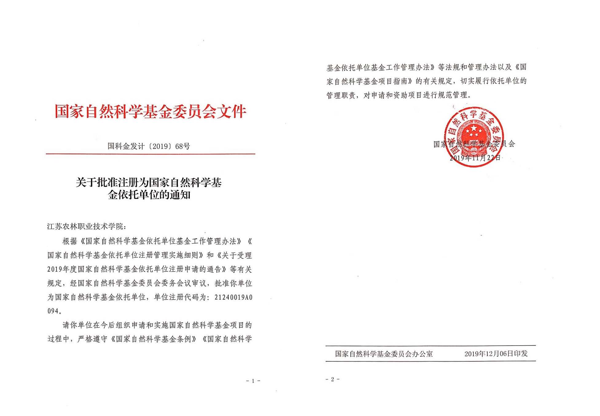 近日,国家自然科学基金委员会网站公布2019年依托单位注册审批结果,我院获批成为国家自然科学基金依托单位。
