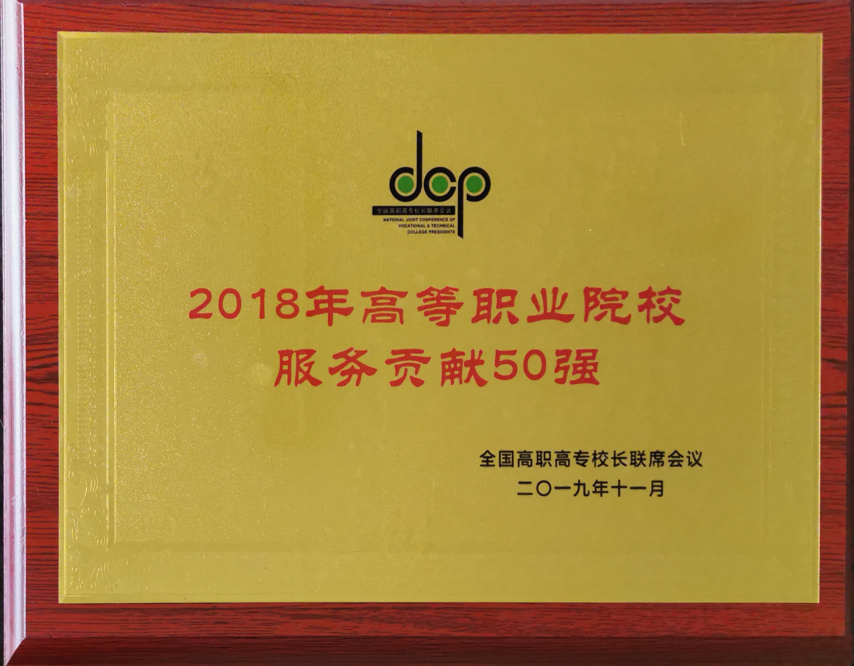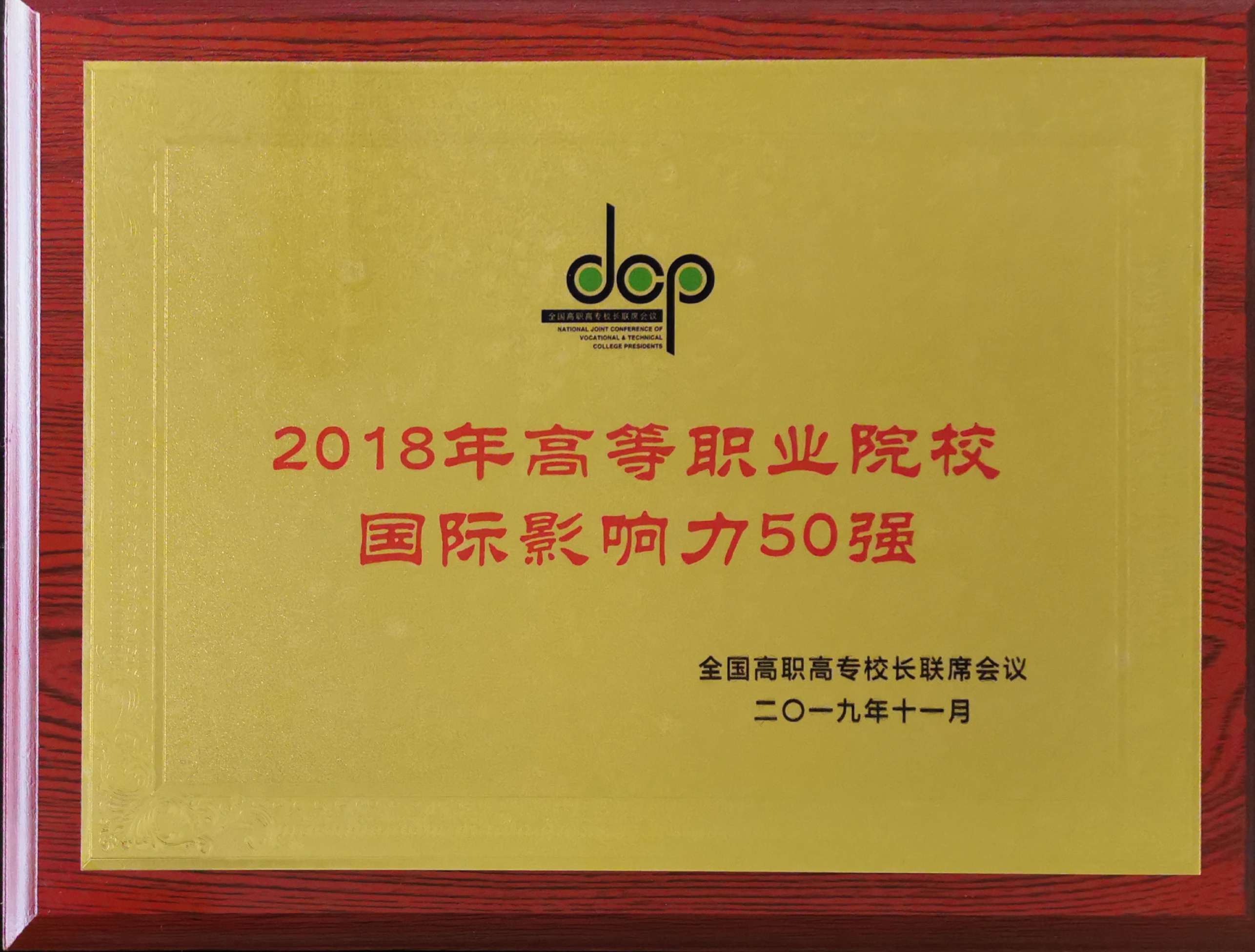 全国高职高专校长联席会议2019年年会11月21日至23日在重庆召开。会议表彰了高等职业院校办学成效卓越的院校。我院获颁“高等职业院校教学资源50强”、“高等职业院校服务贡献50强”和“高等职业院校国际影响力50强”三项荣誉。