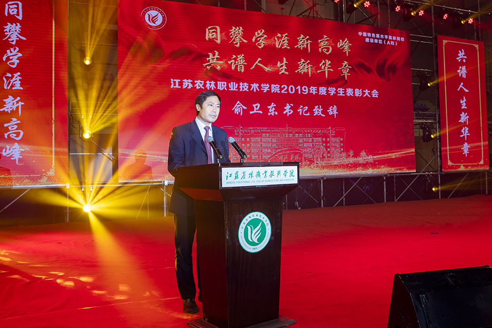 党委书记俞卫东,党委副书记简祖平,党委委员、副院长周兴元,副院长贾君,党委委员、副院长曹仁勇,党委委员、纪委书记周国义,学工处、教务处、科技开发处、团委等职能部门负责同志出席表彰大会,各二级色花堂