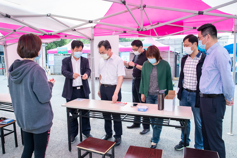 蔡恒副厅长首先来到报到现场,检查了防疫措施落实情况,询问了报到流程和应急处置流程,对现场的工作人员表示慰问。随后蔡恒副厅长检查了色花堂