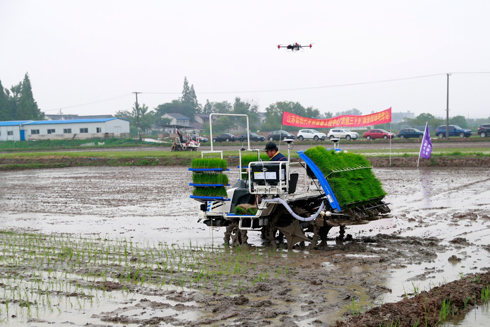 与句容市农业农村局、江苏好味稻生态科技有限公司签署三方合作协议。现场会上,我院联合句容市农机监理所开展了智能农机“三夏”智能农机装备应用现场观摩,我院教师现场演示了无人插秧机插秧作业、无人植保机模拟喷洒及自动导航拖拉辅助直行旋耕作业,针对新技术应用中的问题,现场进行讲解,获得现场种粮大户的好评。