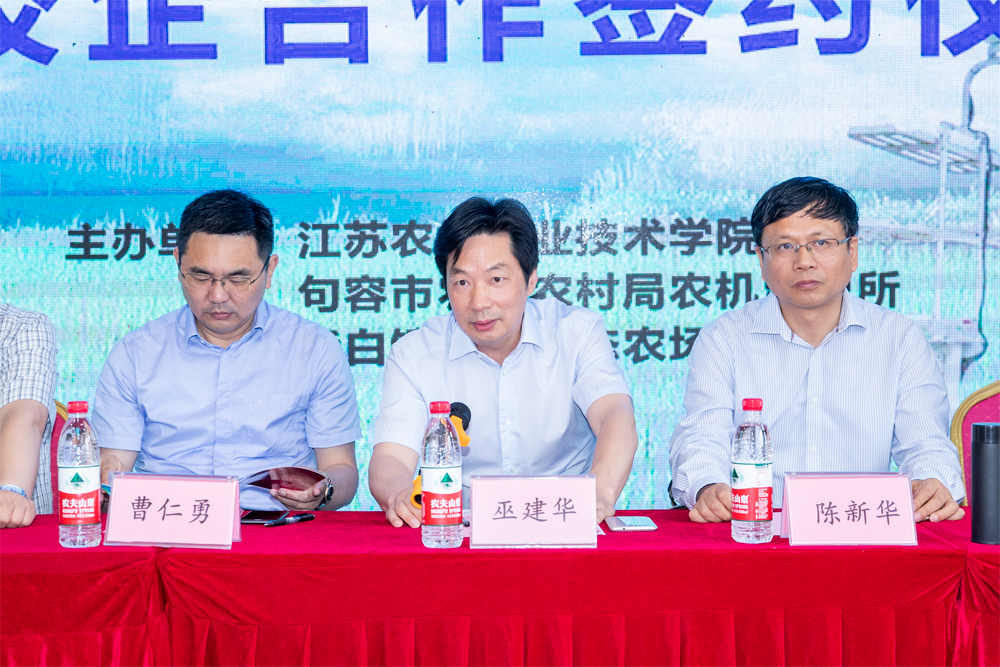 党委副书记、院长巫建华,党委委员、副院长曹仁勇一行赴句容市后白镇参加“三夏”智能农机装备应用现场观摩会,并出席了与句容市农业农村局、江苏好味稻生态科技有限公司共同举办的“政校企合作”签约仪式。
