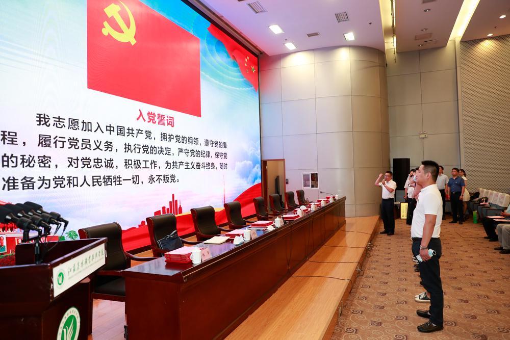 党委委员、党委宣传部部长洪炜同志的带领下进行入党宣誓。