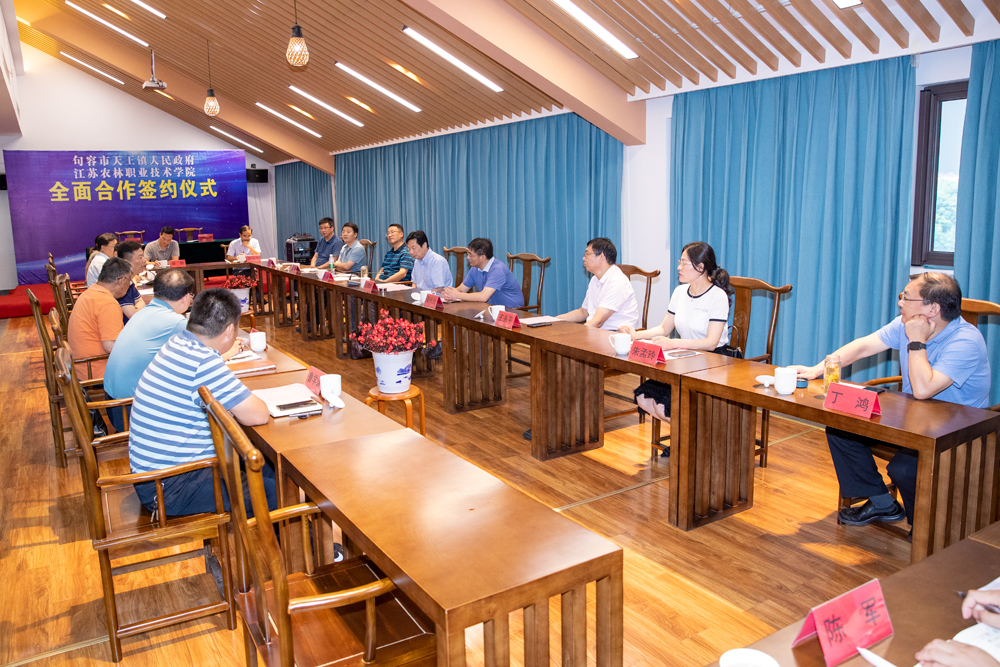 与句容市天王镇人民政府签订了全面合作协议。通过全面合作协议的签订,我院将对天王镇在有机农业、花卉苗木、应时鲜果、设施蔬菜、名优茶叶、中药材等产业开展技术技能提升、就业创业培训等方面有序开展社会化服务。