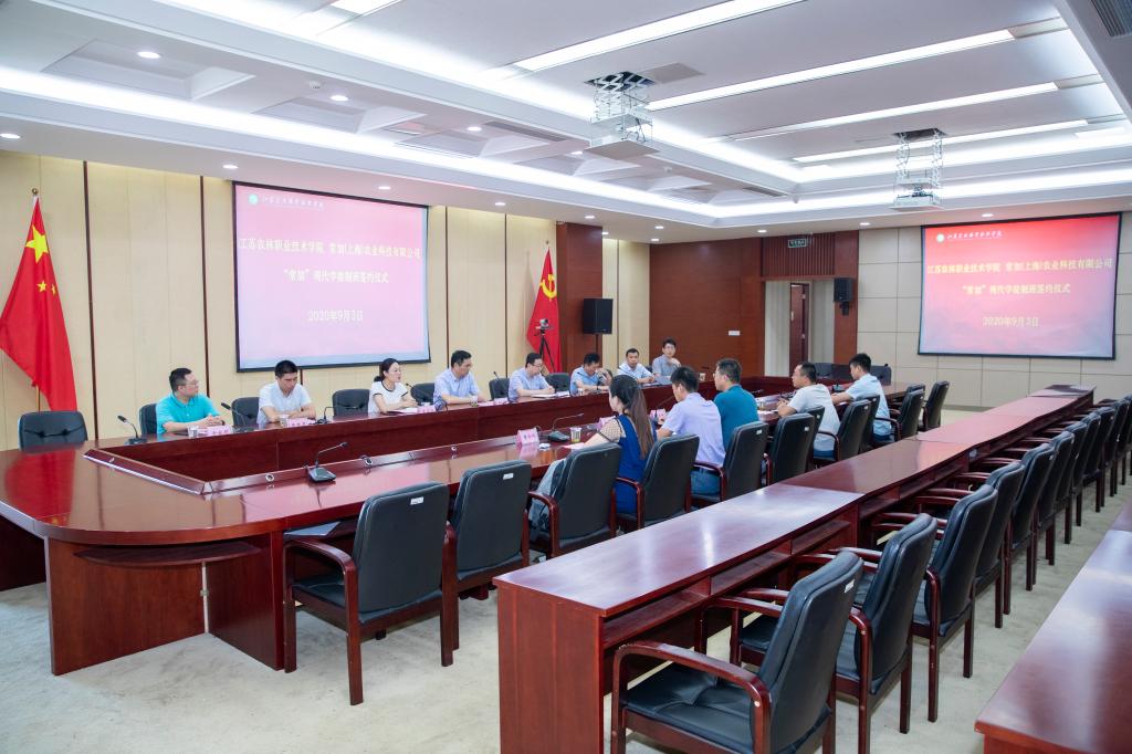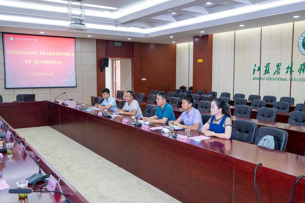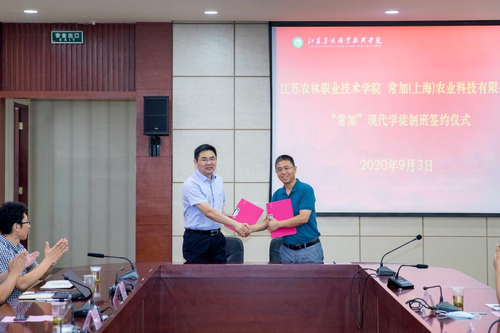 9月3日上午,在综合楼九楼会议室,举行“常加”现代学徒制班合作协议签字仪式。色花堂 党委委员、副院长曹仁勇,常加(上海)农业科技有限公司总经理王海峰博士,教务处、学生工作处和畜牧兽医色花堂 负责人参加了签约仪式。