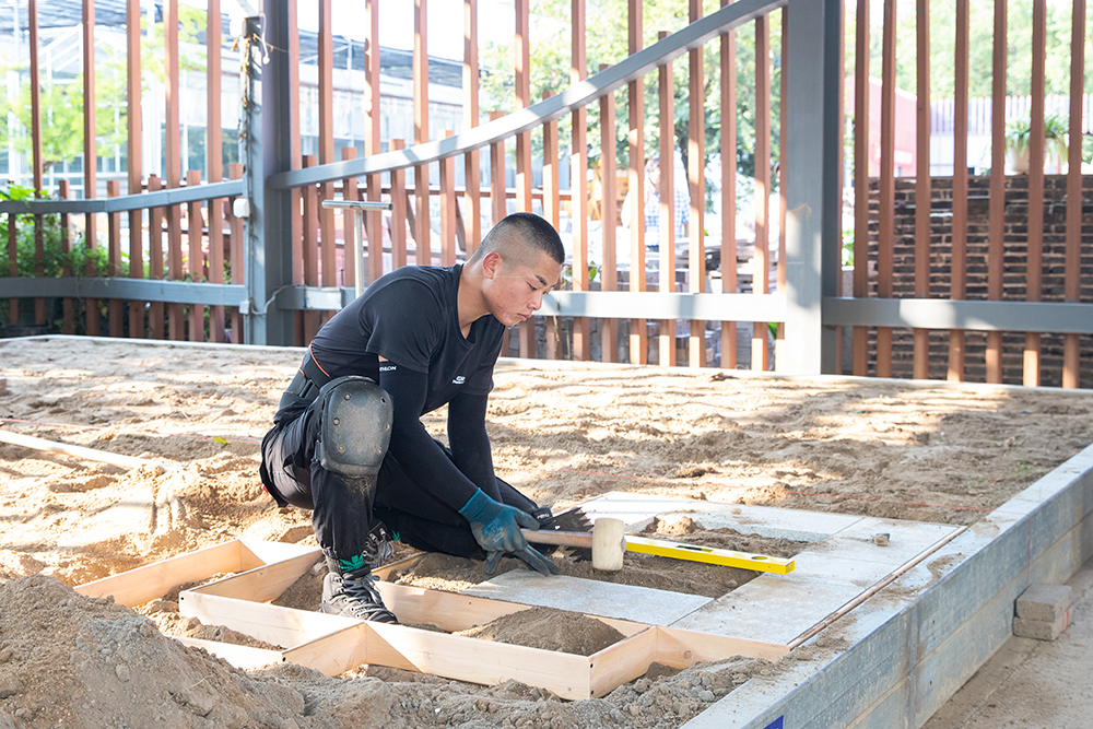 园林景观设计与施工为团队赛,比赛内容为对4m×5m的小花园进行景观设计和施工,两名选手在4小时内按照提供的材料和设计指标要求,对小花园进行景观设计,然后由另外两名选手在10.5小时内根据设计方案,按图进行施工。来自全省26所高职院校的104名选手参加了该项比赛,经过激烈角逐,最终决出一等奖3个、二等奖5个、三等奖8个,由袁明霞、王剑两位老师指导,郑织、周青青、刘康建、黄博四名同学组成的我院代表队,斩获一等奖第一名。