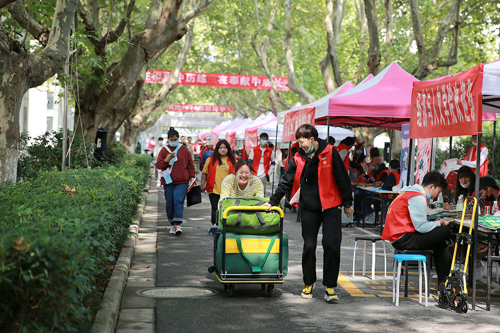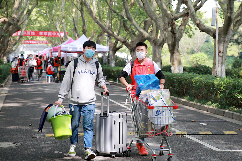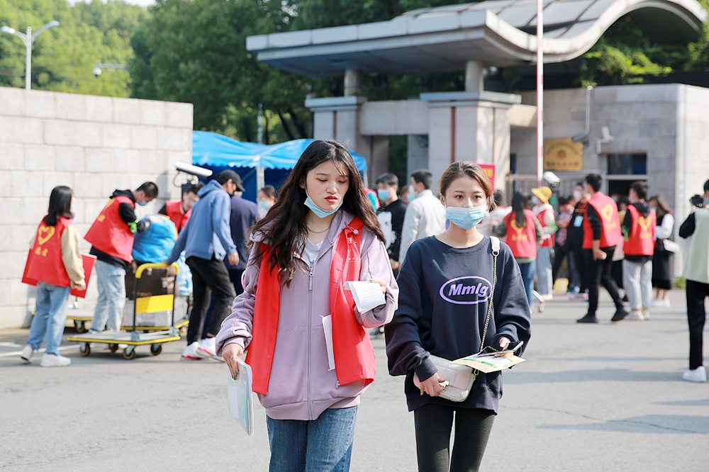 在南京南站、南京站、句容汽车客运站等地,“红马甲”志愿者们早早到位,举着醒目的牌子迎接新生到来;在校园内,更是遍布“红马甲”,志愿者们为新生答疑解惑、搬运行李,提供“一对一”“点对点”的一站式服务;校园迎新入口处安排了医疗救护点;各宿舍楼下设立服务点,引导新生进入宿舍;色花堂