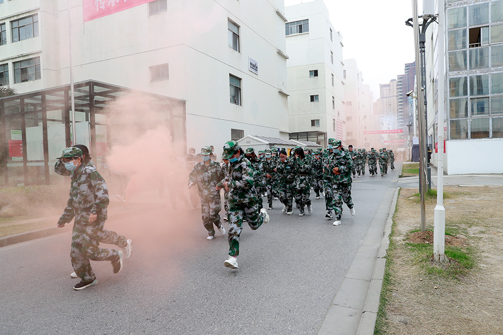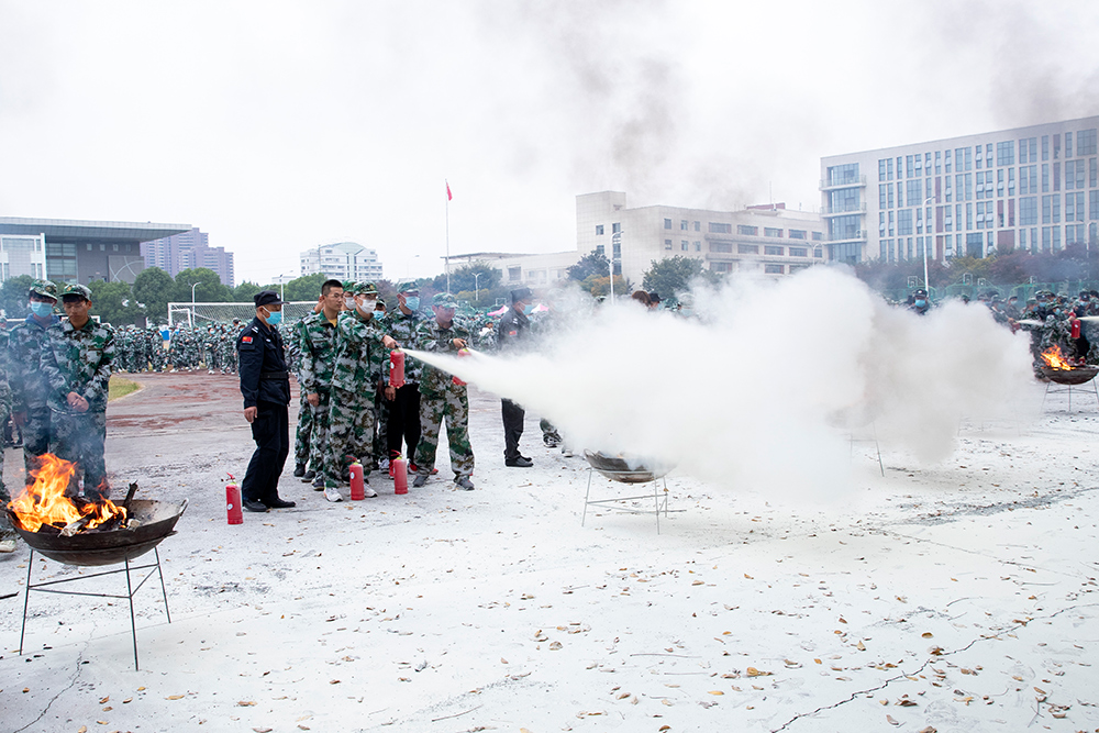 副院长贾君,学生工作处、安全保卫处负责人,军训团教官以及全体新生辅导员参加了演练。句容市消防救援支队派员指导演练。
