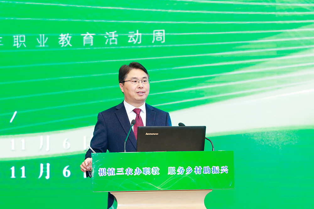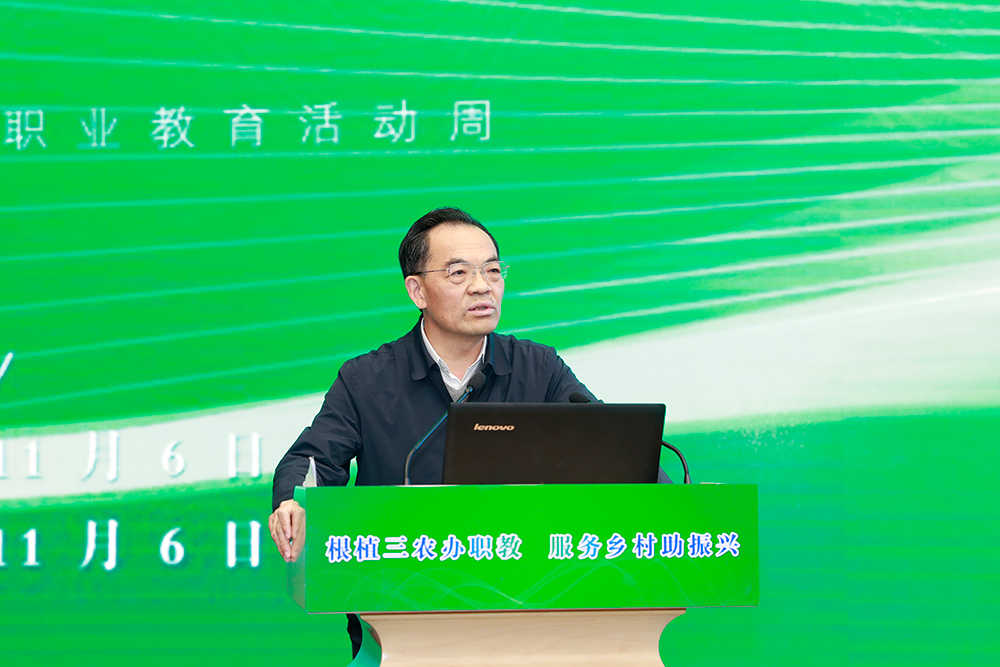 蔡恒致辞并以《江苏现代农业高质量发展》为题,在会上作主题报告。他指出,职教活动周这一平台,汇聚了全省农业高校和职业院校、现代农业企业和行业,共同讨论新时代现代农业职业教育发展大计。行指委将以立德树人为根本,以强农兴农为己任,坚持农业农村优先发展,坚持职业教育优先发展,坚持就业优先发展,为乡村振兴服务,为职业教育高质量发展服务,为农业农村现代化服务。