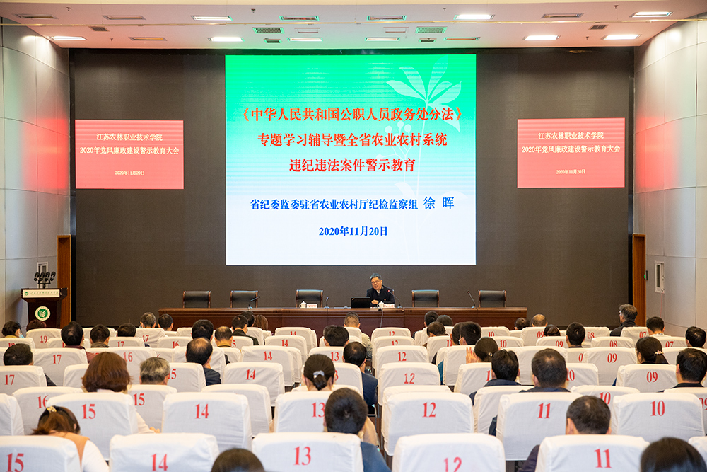 在图书馆报告厅组织召开2020年党风廉政建设警示教育大会,会议邀请了省纪委省监委派驻省农业农村厅纪检监察组徐晖副组长作专题讲座。色花堂