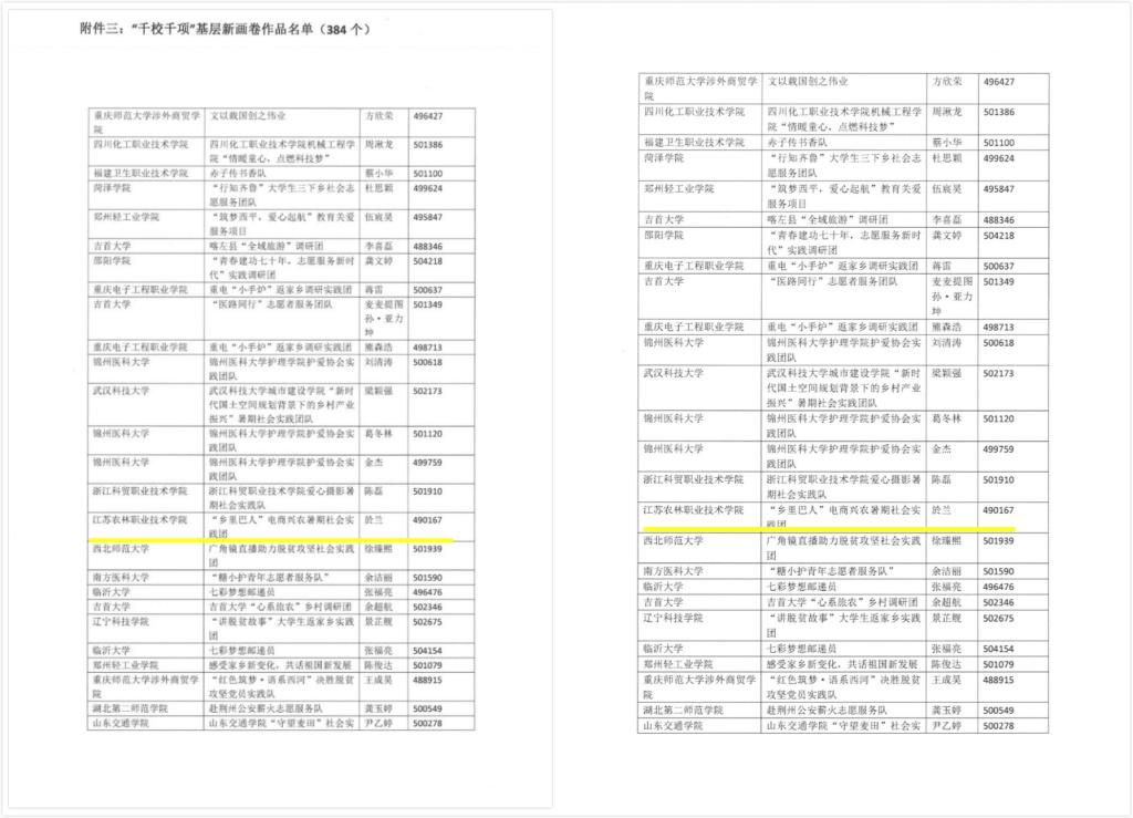 “乡里巴人”电商兴农暑期社会实践团荣获“千校千项”最美团队;学生於兰的作品荣获“千校千项”最美新画卷作品。