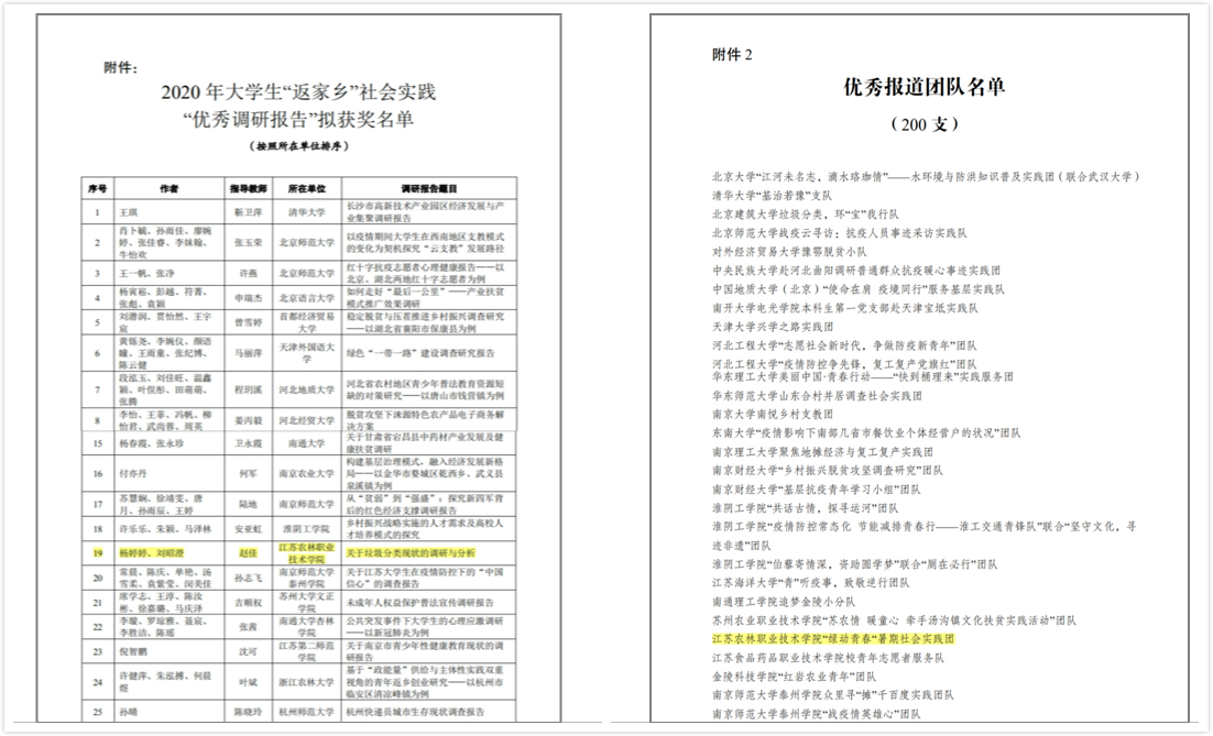 园林风环保社组织的“绿动青春”暑期社会实践团荣获“优秀报道团队”。
