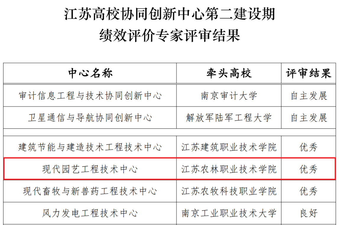 12月18-25日,江苏省教育厅公布了江苏高校协同创新中心第二建设期绩效评价专家评审结果,我院现代园艺工程技术中心获得优秀等次。