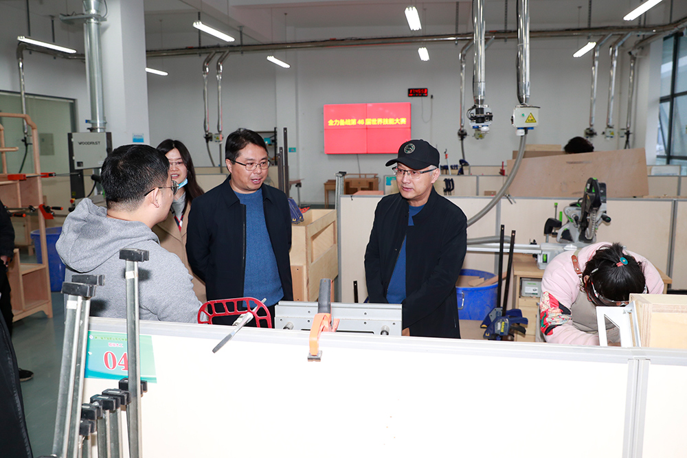 吴金玉一行考察了艺术插花、家具制作和园林景观施工等赛训中心,了解了我院在高素质职业农民教育培训和承办国赛等各类技能大赛的情况,对我院依托各类技能赛训中心开展高素质职业农民培训给予高度赞扬。