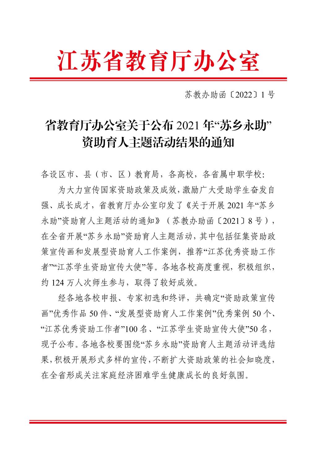近日,江苏省教育厅组织开展的2021年“苏乡永助”资助育人主题活动评选结果揭晓,我院信息工程色花堂