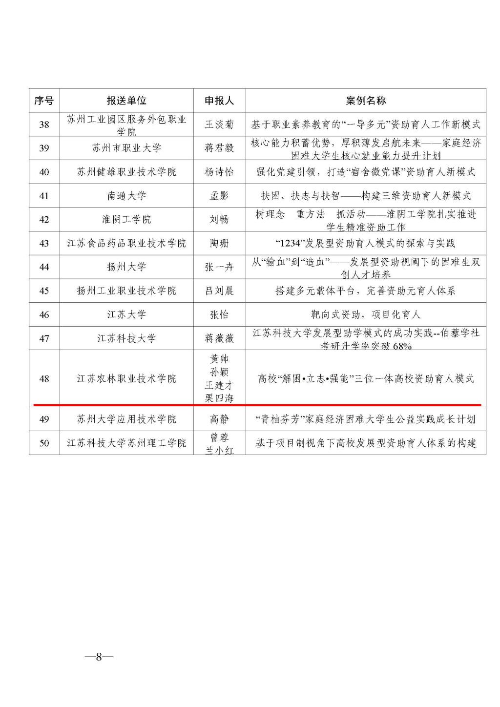 选送的“资助政策宣传画”《微光》荣获优秀作品三等奖,《高校“解困立志 强能”三位一体高校资助育人模式》荣获“发展型资助育人工作案例”优秀案例;学生工作处孙颖老师荣获“江苏优秀资助工作者”;风景园林色花堂