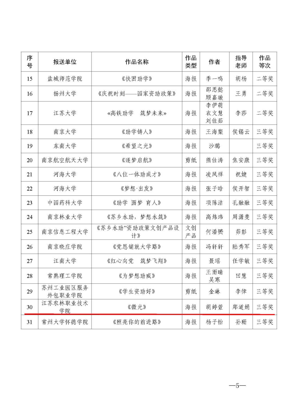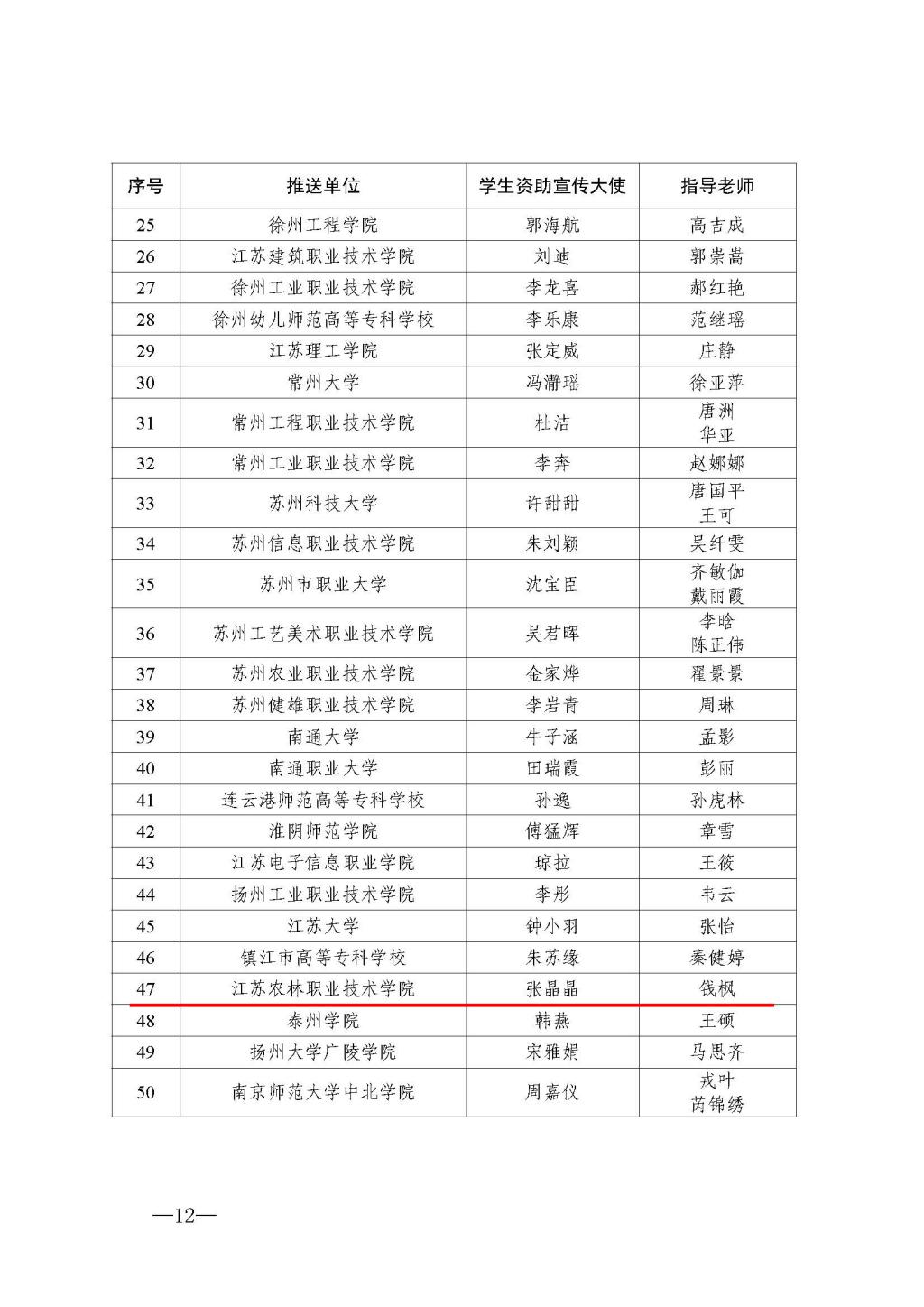 张晶晶同学荣获“江苏学生资助宣传大使”。