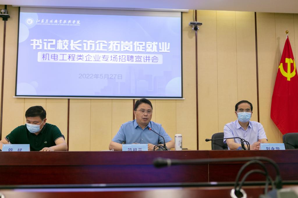 中国种子集团有限公司江苏分公司、中农立华生物科技股份有限公司、西门子数控(南京)有限公司、金纬机械溧阳有限公司等企业代表就人才需求作了交流。会后,各参会企业进行了专场宣讲招聘,1000余名毕业生通过腾讯会议参与活动。我院同时在“91JOB”智慧就业平台开通了“访企拓岗促就业”“苏企优才实习岗位”招聘信息发布专区,将本次“书记校长访企拓岗促就业”系列活动募集到的就业实习岗位信息同步推送给毕业生。