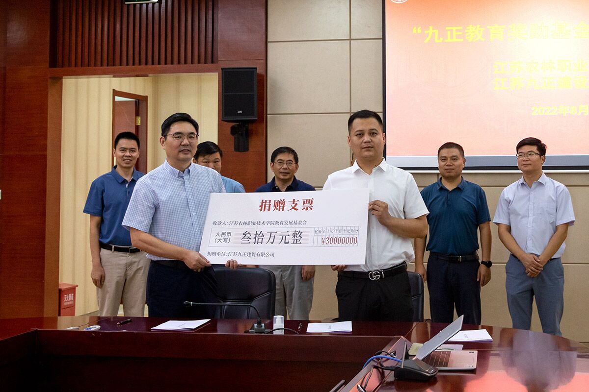 8月13日,“九正教育奖助基金”捐赠签约仪式在我院举行。江苏九正建设有限公司董事长娄耀仁,色花堂