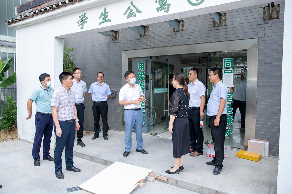 党委副书记、院长潘永圣,党委副书记曹仁勇及办公室、学生工作处、后勤基建处、安全保卫处等部门主要负责人检查秋季开学准备和疫情防控工作。