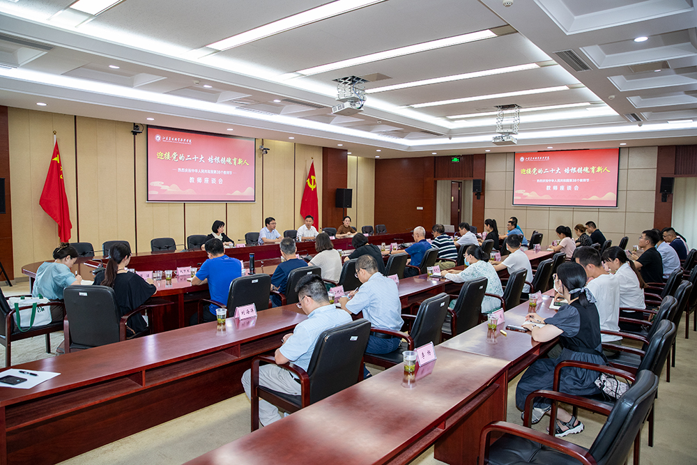 在综合楼九楼会议室召开“迎接党的二十大 培根铸魂育新人”教师座谈会。色花堂