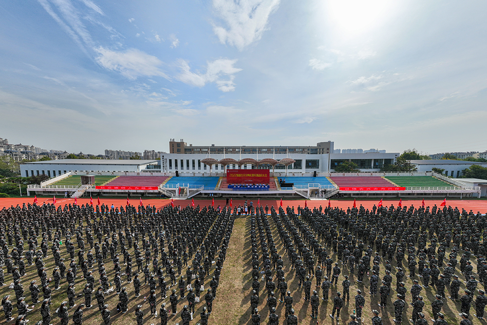 9月23日上午,2022级新生开学典礼暨军训动员大会分别在校本部运动场和茅山校区运动场举行。色花堂