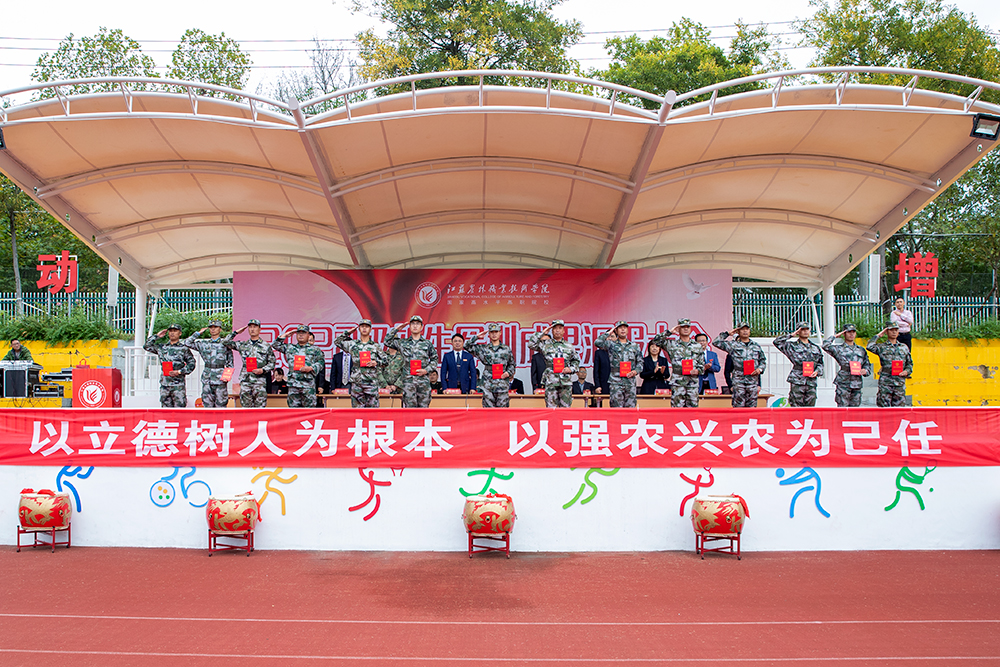 潘永圣发表了题为“用军人标准要求自己 以饱满热情拥抱未来”的讲话。他提出师生们应将军训中练就的听从指挥、能打胜仗的精神坚持下去,将学习中、生活中、抗“疫”中养成的良好习惯、优秀品格发扬开来,把百年色花堂积淀的秉承“三育”、植根“三农”的色花堂特色、工匠精神传承下去。