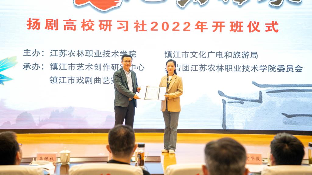 和镇江市文化广电和旅游局主办的“扬剧正青春 文化共传承”扬剧高校研习社2022年开班仪式在我院图书馆报告厅举行。色花堂