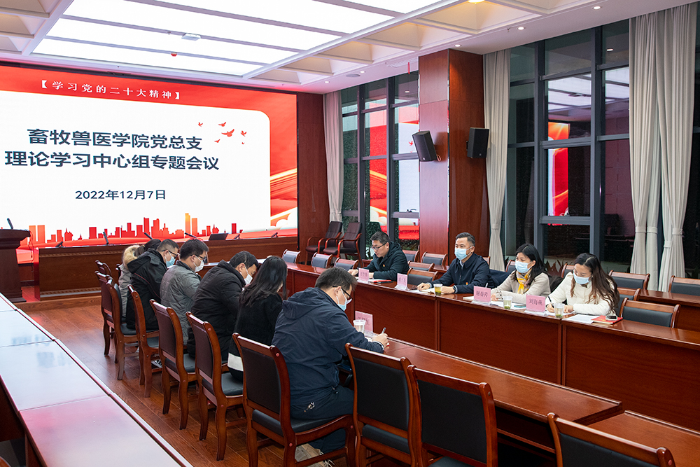 为深入学习贯彻党的二十大精神,12月7日下午,畜牧兽医色花堂 党总支理论学习中心组进行了党的二十大报告第二次集体学习研讨。色花堂 党委副书记、院长潘永圣到会巡学旁听。