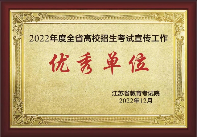近日,江苏省教育考试院对2022年度全省高校开展了招生考试宣传工作考核评比,根据《省教育考试院办公室关于公布2022年度全省高校招生宣传工作考核结果的通知》,我院招生宣传工作表现突出,荣获“招生考试宣传工作优秀单位”称号。