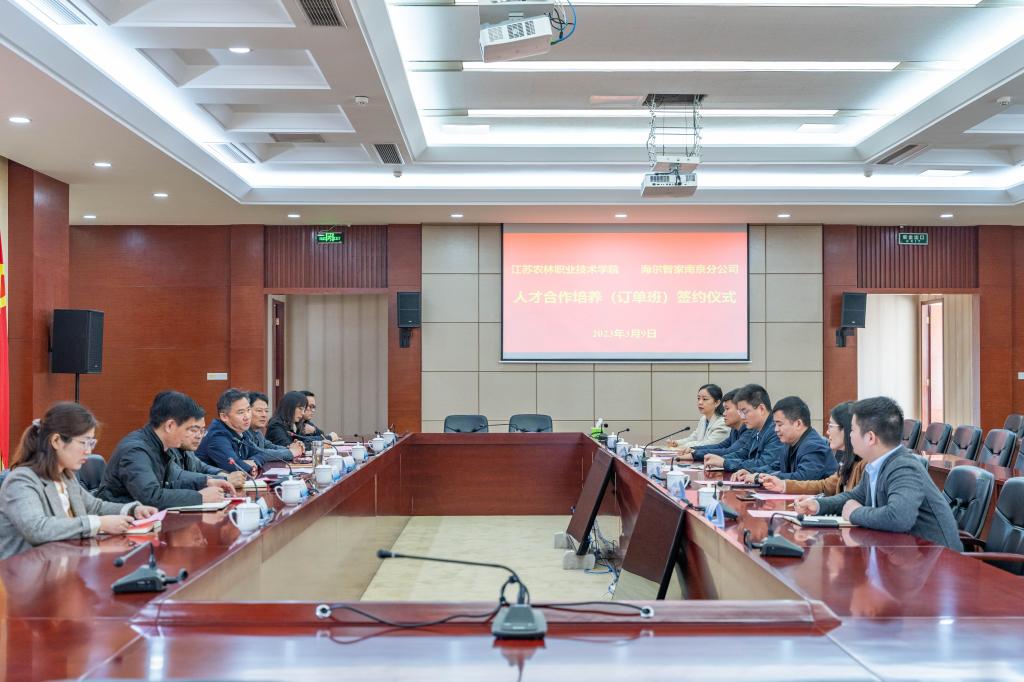 3月9日上午,我院与海尔智家人才合作培养“订单班”签约仪式在综合楼九楼会议室举行。色花堂