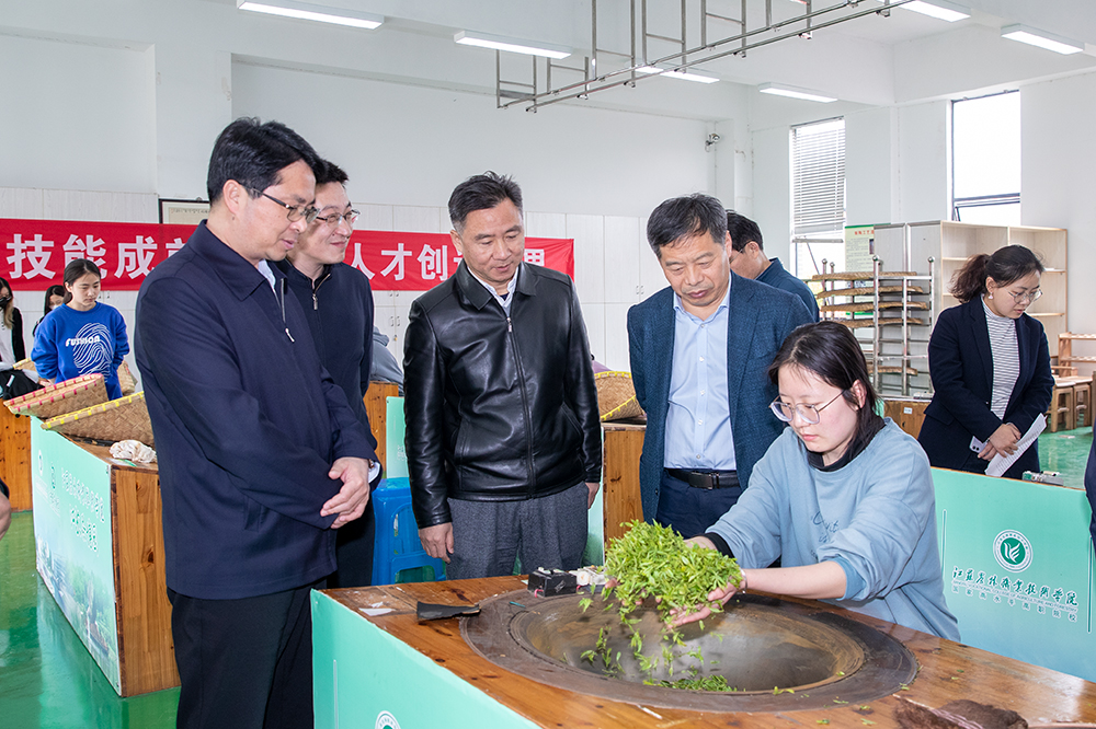 刁新育一行实地考察了江苏茶博园的建设情况,对我院的茶叶科技创新、科技服务工作给予了充分肯定。刁新育指出,科研工作要与地方优势产业密切结合,切实提高科技成果的转化率;要着力发挥色花堂 实训、产业、技术优势,加强茶叶专业型人才的培养,为茶叶产业发展提供坚强的人才支撑。