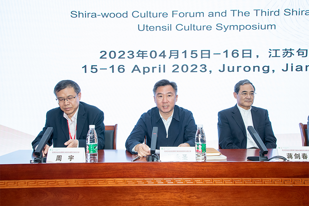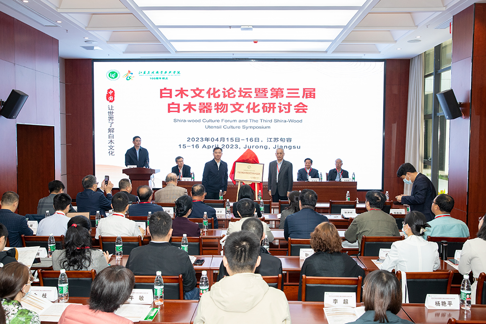 致辞,并与中国木材与木制品流通协会李佳峰会长共同为授予我院的“中国园林白木建筑技艺传承示范基地”揭牌。风景园林色花堂