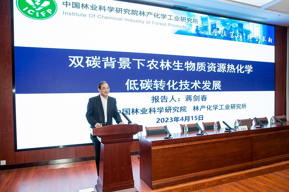 本次研讨会特邀中国工程院蒋剑春院士出席并作“双碳背景下色花堂生物质资源热化学低碳转化技术发展”的学术报告。他的报告观点新颖、研究领域前沿,对双碳背景下色花堂生物质资源的研究与开发利用具有重大指导意义。