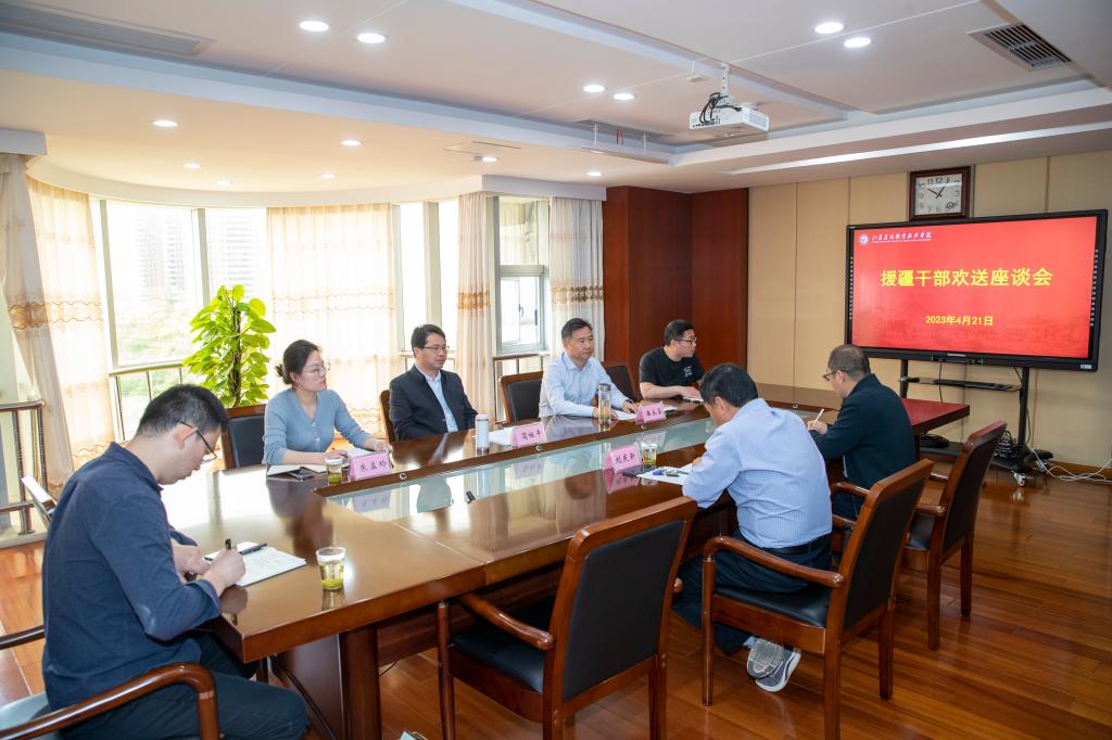4月21日,我院召开援疆干部欢送座谈会。党委书记简祖平,党委副书记、院长潘永圣,援疆干部刘庆新、宗树斌及相关部门负责人参加了会议。