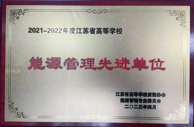 近日,江苏省高等学校后勤协会能源管理专业委员会2021-2022年年会在淮安召开。会议公布了“2021-2022年度江苏省高等学校能源管理先进单位、先进个人”评选结果,我院获“2021-2022年度江苏省高等学校能源管理先进单位”称号。