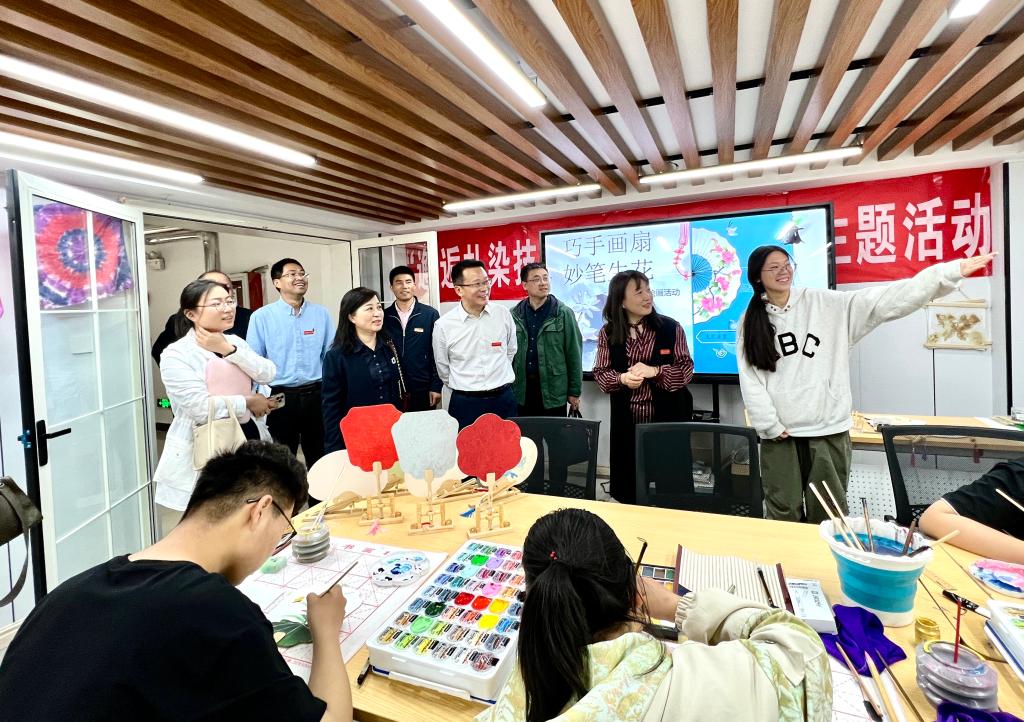会后,丛彬彬一行深入三育文苑学生社区,实地参观了初心党团室、知行劳创室等功能室以及辅导员办公室和宿舍,观看了油纸伞、团扇、风筝等“六点半大美课堂”学生作品。