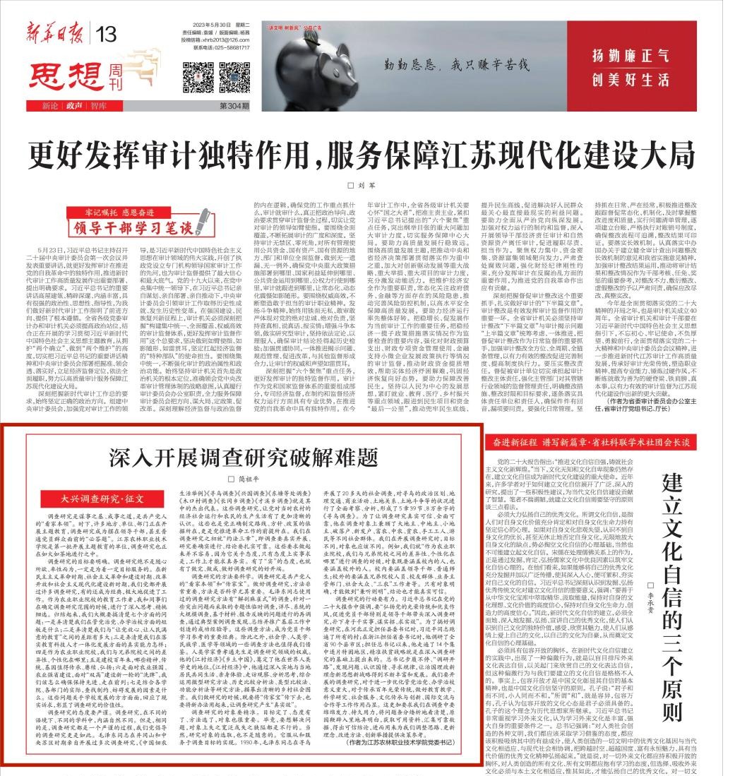 5月30日,《新华日报》“思想周刊”刊发我院党委书记简祖平同志署名文章“深入开展调查研究破解难题”。全文如下: