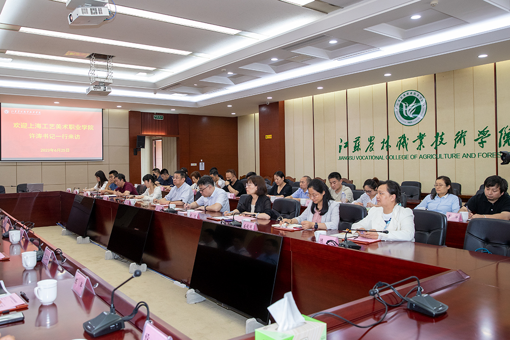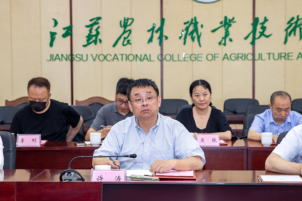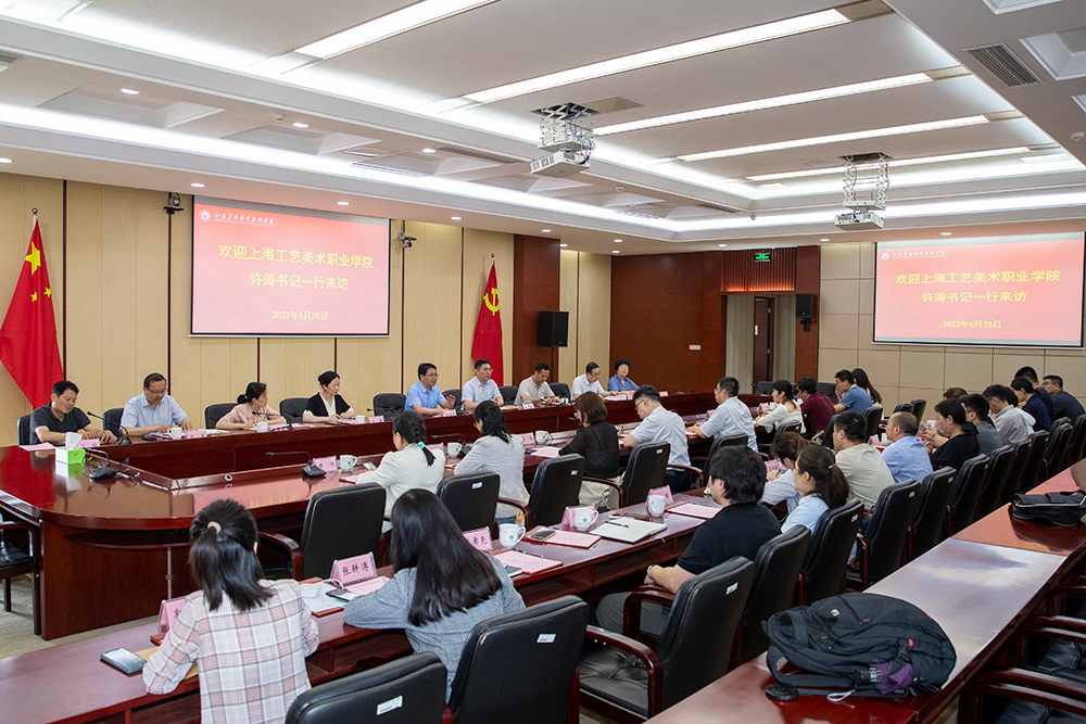 对许涛一行来访表示热烈欢迎,并详细介绍了我院的基本情况和“双高”建设以来取得的成绩。许涛对我院的热情接待表示感谢,对我院取得的办学成绩和成果给予了高度评价。双方就人才培养、科研平台和团队建设、绩效激励机制、产教融合发展模式以及高层次人才引进和管理等方面进行了深入的交流,并分享了各自的经验做法。