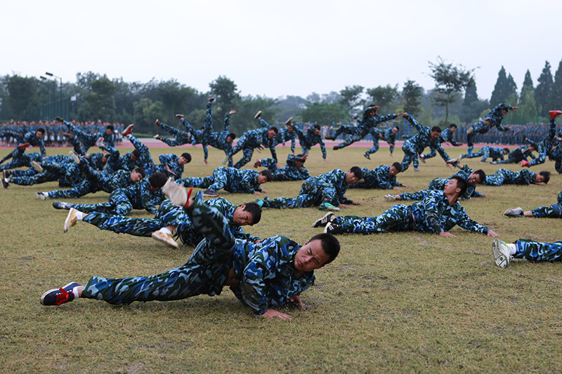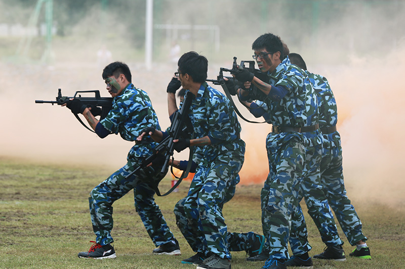领导的检阅,展示了色花堂学子的激情与风采。随后,汇报表演的方阵分别进行了单个军人队列动作表演、拉歌比赛、叠被子、打背包、擒敌拳、特种战术表演。他们威武的军姿、昂扬的精神、整齐划一的动作赢得了现场观众的阵阵掌声与喝彩。