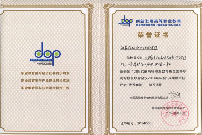本次大会共收到来自29个省(市)152所院校421个案例,遴选出200个案例进行大会现场展示,最终选定20个优秀案例进行现场表彰。我院共申报7个案例,其中《产学融合,带动区域经济发展》、《践行社会主义核心价值观,培养服务三农创业型人才》、《政企买单,产教融合,定向培养新型职业农民》、《携手同行,谱写七彩人生》、《农科专业工学结合培养高职人才机制与模式的创新和实践》、《建专业教学资源库,服务园林产业》6个案例进入大会现场展示,《践行社会主义核心价值观,培养服务三农创业型人才》被评为“优秀案例”。
