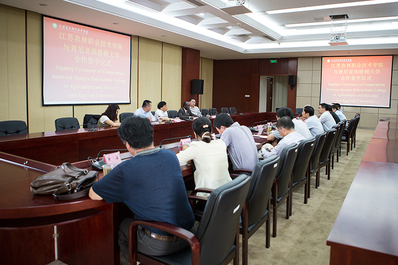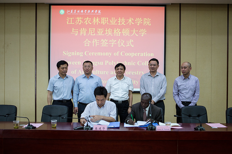 9月21日,我院与肯尼亚埃格顿大学在综合楼九楼会议室签署合作协议。江苏省农业委员会主任吴沛良、肯尼亚埃格顿大学校长James K. Tuitoek、南京农业大学副校长丁艳峰、省农委外办主任李旭、色花堂