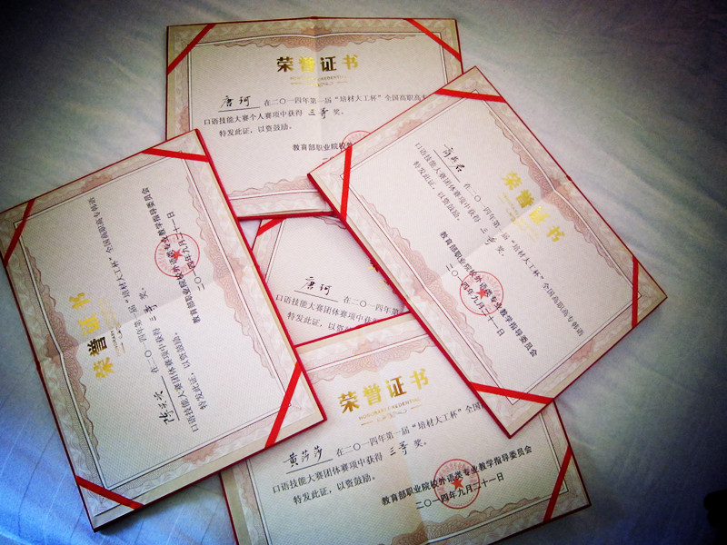 本次全国技能大赛分预赛和决赛,共45所院校参加预赛,经过选拔,有24所高职院校100多名学生参加本次个人和团体决赛的角逐。其中,我院2名学生进入个人赛决赛、4名学生进入团体赛决赛。经过两天紧张激烈的比赛,我院应用韩语专业唐珂同学荣获个人赛三等奖,商燕君、唐珂、陈兴兴、黄莎莎同学荣获团体赛三等奖。宋开春、张娟老师分别荣获优秀指导教师奖。