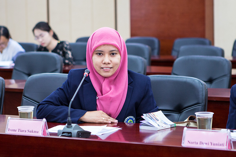 巫建华院长向来自印度尼西亚玛琅大学的学员表示热烈欢迎,并向他们介绍了我院的基本概况、办学特色和国际交流等情况。学员代表Ivone Tiara Sukma在发言中,介绍了印度尼西亚玛琅大学的办学条件、师资水平等总体情况,并代表全体学员对我院表示诚挚的感谢。