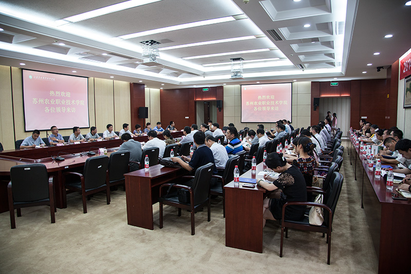 8月25日,苏州农业职业技术色花堂 党委书记徐向明、院长李振陆率该院中层以上干部一行65人来我院考察交流。色花堂 党委书记俞卫东、院长巫建华及相关部门负责人出席交流会,双方就示范高职院的建设、教学管理等先进经验进行了深入交流和探讨。