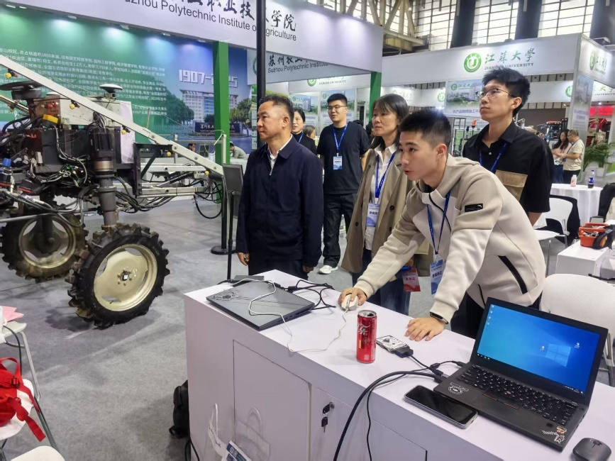 我院集中展示了近年来围绕现代农业科技发展、农机教学等开发的农机新装备、新系统,包括“基于混合现实(MR)的智能农机教学系统”“高标准农田精准灌溉施肥装置”“自动化组培装置”“垄作草莓全电动智能趴俯式多功能管理机”等,展区吸引了众多观众、同行、媒体驻足,展示的作品得到省农业农村厅领导的高度评价。