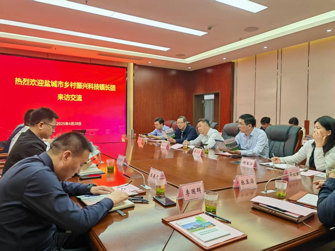 4月28日上午,盐城市乡村振兴科技镇长团一行9人,在团长徐国彬副县长的带领下到我院考察交流。党委副书记、院长潘永圣,党委副书记曹仁勇及相关职能部门负责同志参加了会议,双方围绕乡村振兴人才培养、产学研合作等议题展开深入交流。