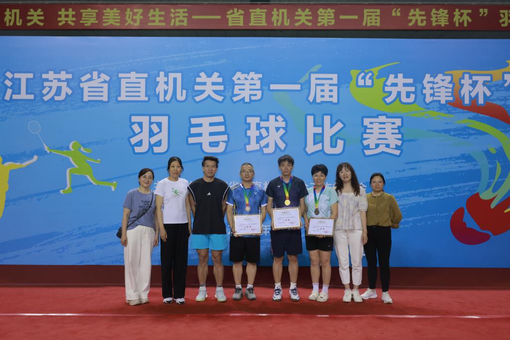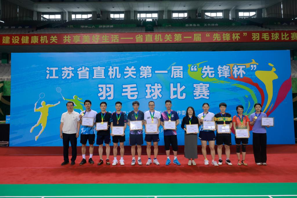 5月16日—17日,由省委省级机关工委组织的江苏省直机关第一届“先锋杯”羽毛球比赛在南京举行,来自省直机关92支代表队的900余名干部职工齐聚一堂,和羽毛球世界冠军戴韫、汤金华等顶尖高手同场竞技。省级机关工委常务副书记苏春海,省体育局党组成员、副局长肖爱华,省级机关工委副书记徐前兵、柴家鸿出席活动并颁奖。经过紧张激烈的角逐,我院教师刘旭获得中年组男单一等奖,张丽丽获得青年组混双二等奖,邓永兴获得中年组男单三等奖。