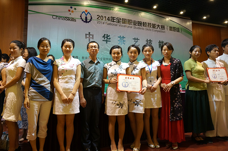 6月16日―18日,2014年全国职业院校技能大赛中华茶艺赛项在杭州举行。我院风景园林系的臧娴、万仕林、陈巧、刘月蓉等四位同学在指导老师李园莉、朱锦的带领下,与来自全国21个省的45支代表队同台竞技,经过指定茶艺、创新茶艺、解读茶艺、特色体验四个环节的激烈比拼,最终获得了团体二等奖的优异成绩。
